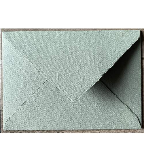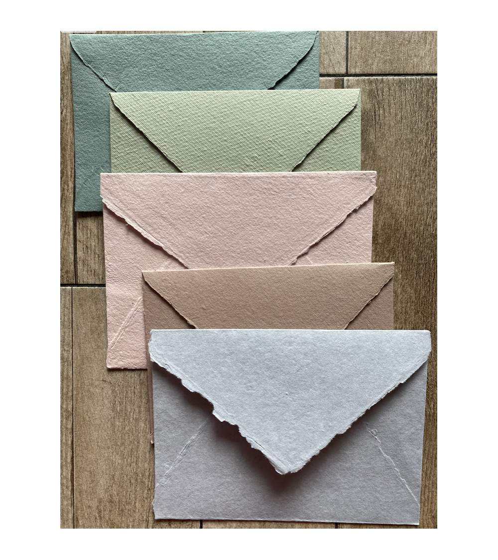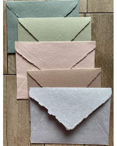 La trama esterna può essere diversa in quanto acquisisce il disegno del tessuto su cui viene lasciata ad asciugare. Anche la tonalità può differire leggermente da una busta all’altra. Questo rende ogni pezzo unico e originale.