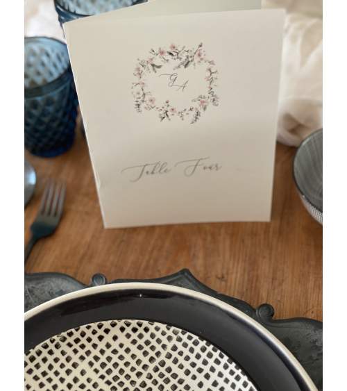 Quella interna se il numero di ospiti per tavolo lo prevede verranno inserirti i nomi degli ospiti (consigliato 10-12 ospiti per segna tavolo) solo per formato A5.